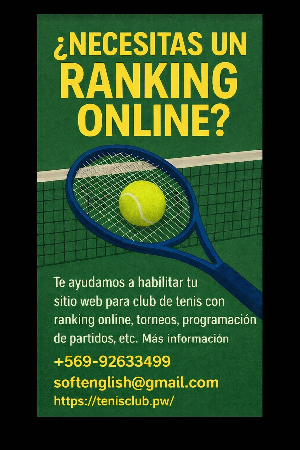 Tenis Club Online te permite tener un sitio personalizado conde puedes llevar tus torneos, rankings, programación ,y registro de partidos.